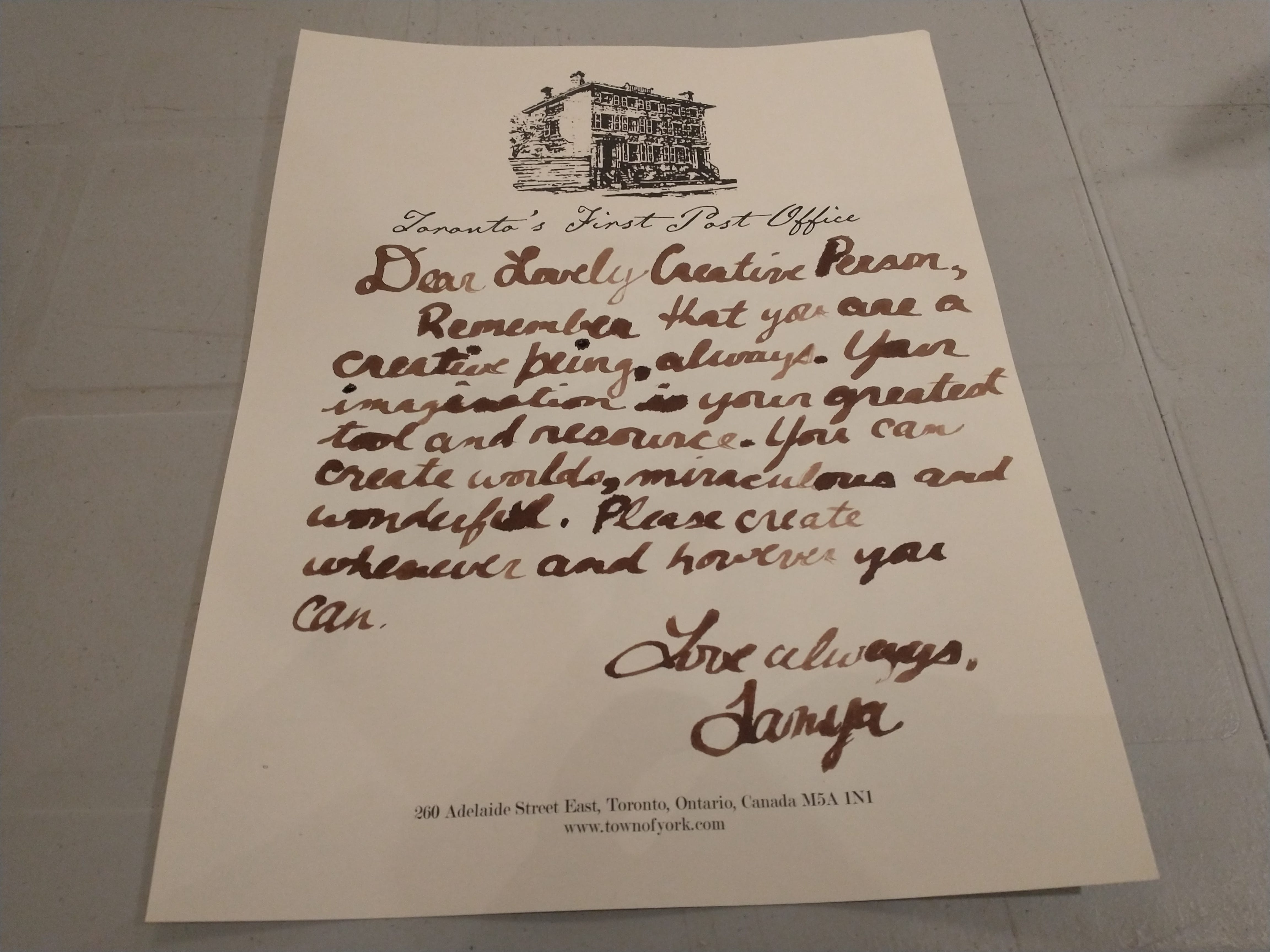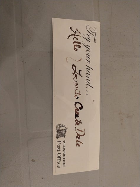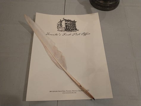 Although the workshop was held in Toronto’s first post office, neither of us realized we’d have to write an actual letter. We had no idea who to write to.