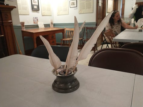 It was a great workshop, and I wonder if I’ll be abel to use any of this information we learned in a story at some point. I found myself thinking so much about how life was then versus now. Considering we’re so hyper-connected and have to be on ten different apps just to keep track of everyone and everything, imagining waiting for an entire year just to receive one reply that’s on one page only (because the cost of paper and ink was so expensive), it gives an interesting perspective.