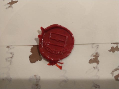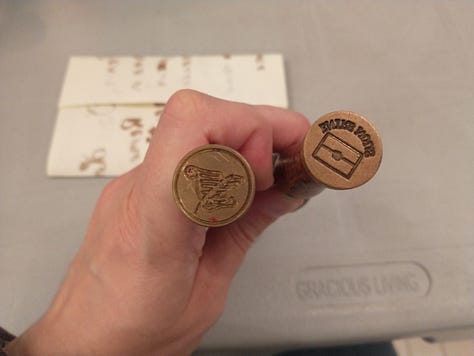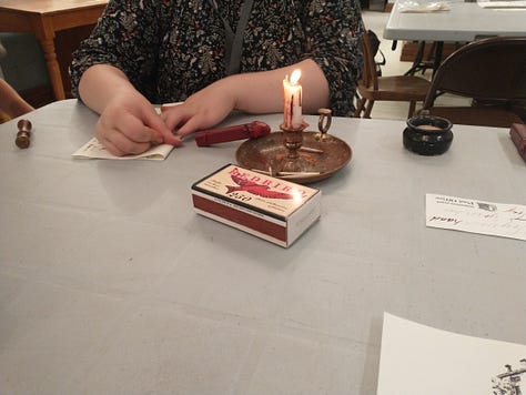 And then we got to choose either the “entre nous” or quill and paper seal to use with the wax. The entre nous was used if you wanted to signify not to read the letter in front of your family, which was often what was done.